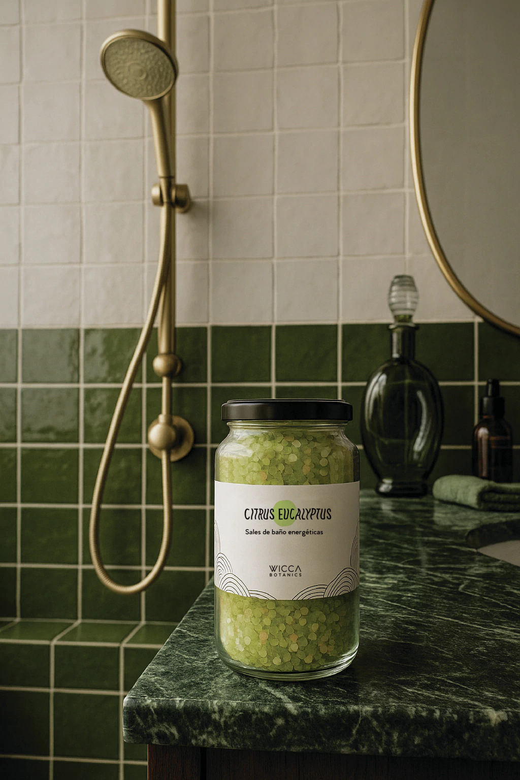 Sales de baño con aceites esenciales de notas mentoladas y alimonadas, diseñadas para hidratar, revitalizar y aportar antioxidantes gracias al Té Verde Matcha y la arcilla verde Bentonita.